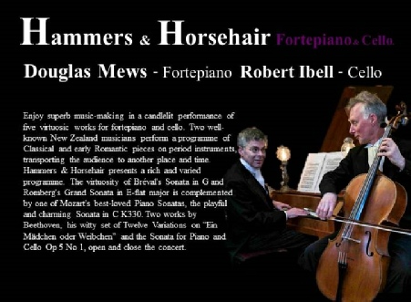 Hammers & Horsehair presents a rich and varied programme. The virtuosity of Bréval's Sonata in G and Romberg's Grand Sonata in E-flat major is complemented by one of Mozart's best-loved Piano Sonatas, the playful and charming Sonata in C K330. Two works by Beethoven, his witty set of Twelve Variations on “Ein Mädchen oder Weibchen” and the Sonata for Piano and Cello Op 5 No 1, open and close the concert.