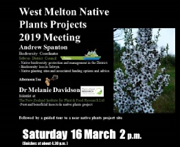 West Melton Native Plants Projects 2019 Meeting Andrew Spanton- Selwyn District Council - Native biodiversity protection and management in the District. - Biodiversity loss in Selwyn. - Native planting sites and associated funding options and advice. Dr Melanie Davidson Scientist at- Plant & Food Research Ltd -Pest and beneficial insects in native plants project Followed by afternoon tea and a guided tour to a near native plants project site |