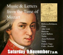 Music & Letters from the Time of Mozart Rebecca Robinson, Flute, Julie Link, Bassoon, Carlo Ballara, Violin, Anne Robinson, Viola , Francis Yapp,Cello |
