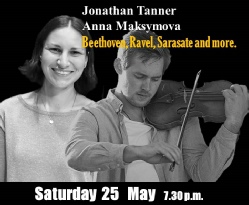 Jonathan Tanner & Anna Maksymova Jonathan Tanner & Anna Maksymova performing works by Bach, Mozart, Beethoven, Brahms, Ravel, and Sarasate. Jonathan Tanner (Violin) Anna Maksymova (Piano) |