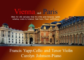 Vienna & Paris Music for cello and piano from two of the great European capitals, including works by Schubert, Saint-Saëns, Fauré, and Debussy Francis Yapp- Cello & Tenor Violin Carolyn Johnson-Piano |