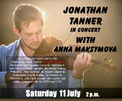 An exciting and varied concert with Christchurch-based Violinist Jonathan Tanner. Regular performer with the NZSO and CSO